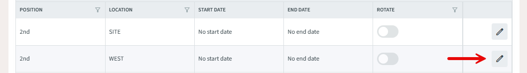 - If the employee should be on a rotation for a job, enable the Rotate option. After the edit is complete, click the green checkbox.